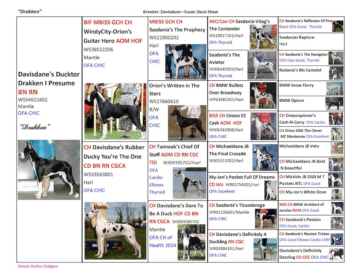 Duckens won the Stud Dog class at the 2014 Great Dane National Specialty.