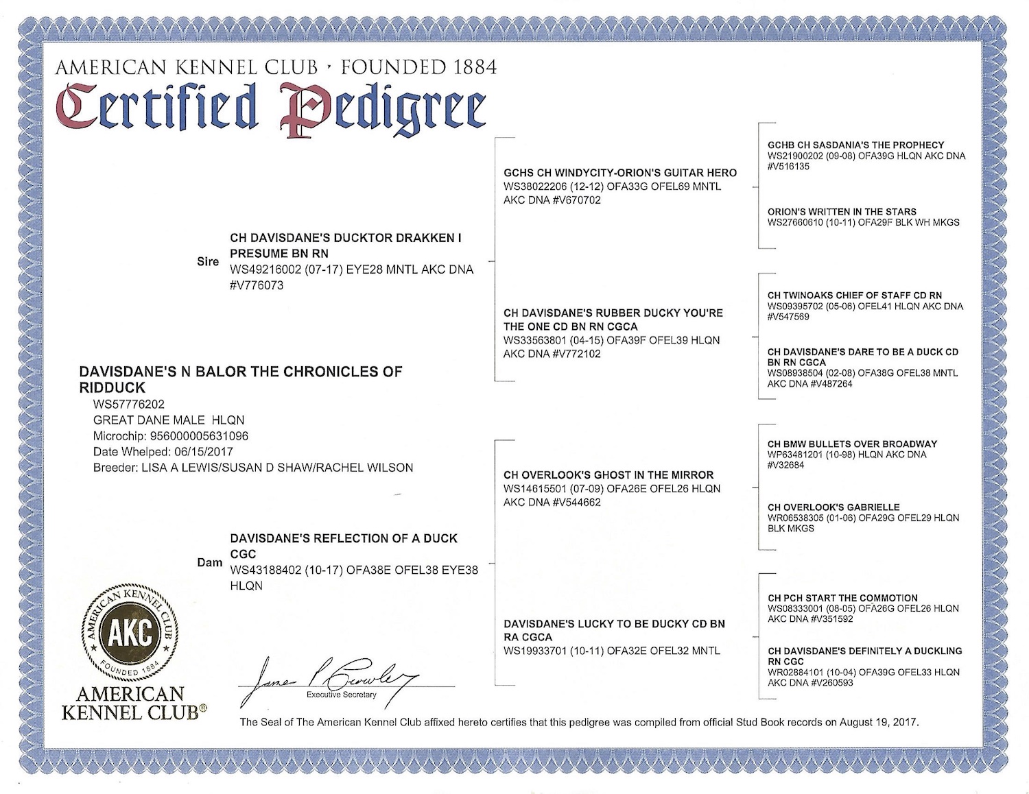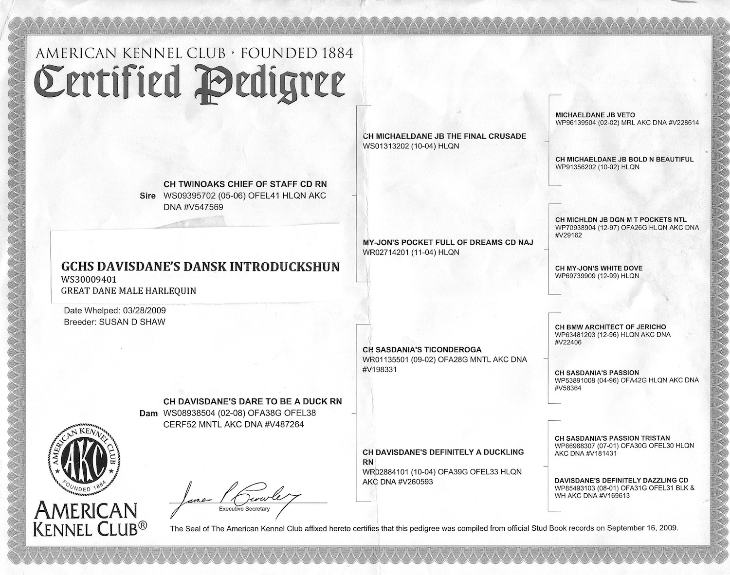 GCH Davisdane's The Duck Stops Here, RI, CGC CHIC ‘Buck’