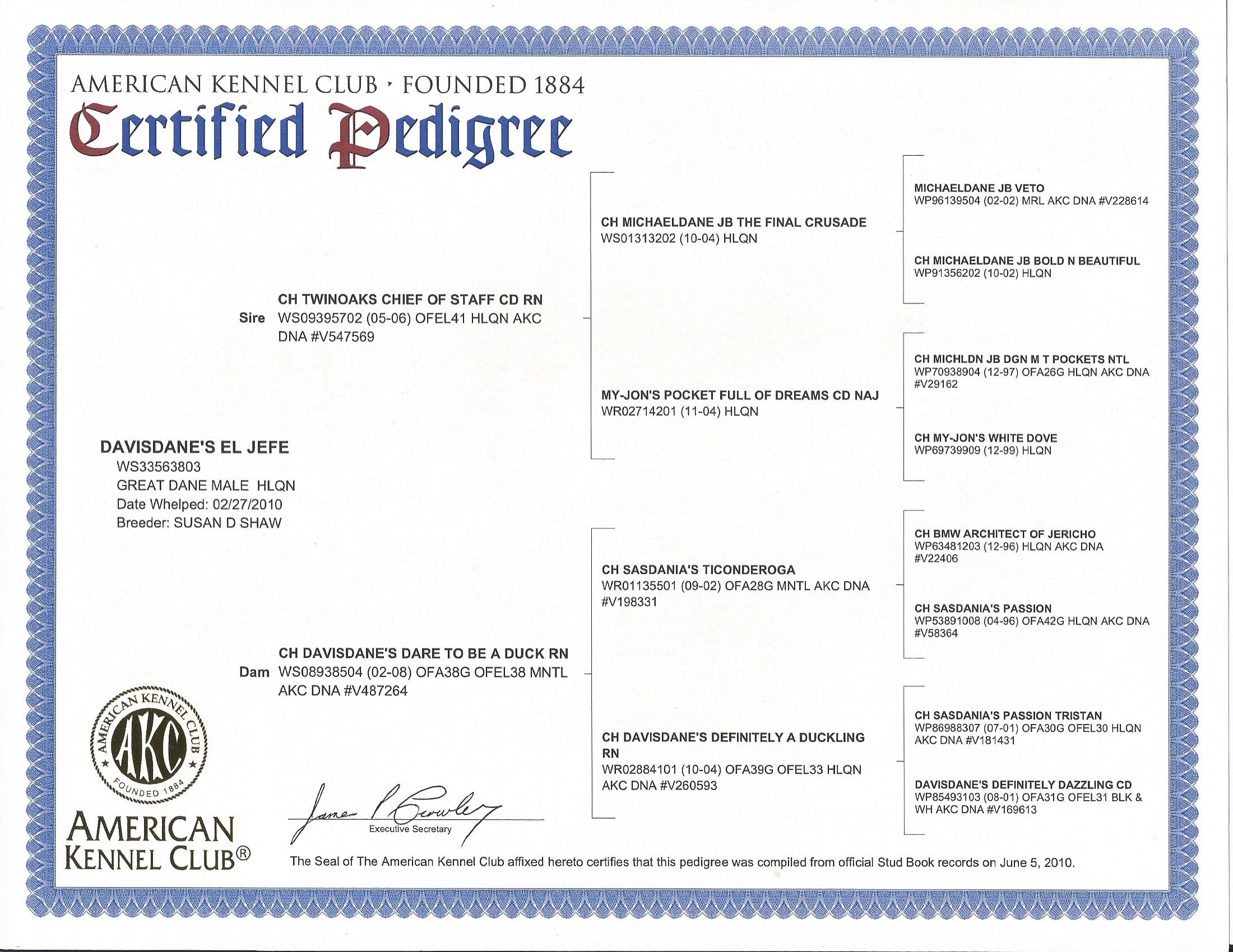 CH Davisdane's El Jefe, RN CHIC ‘Hugo’